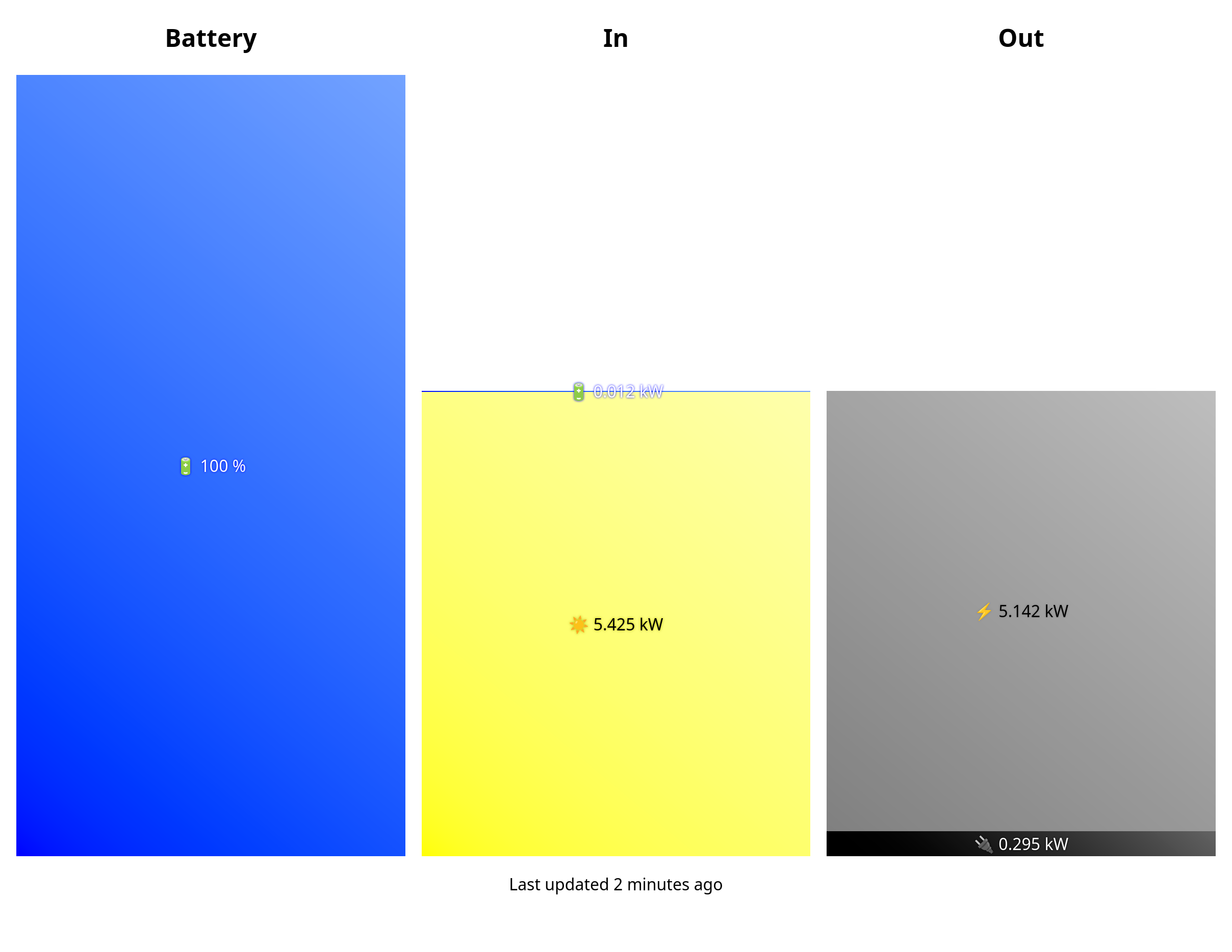 A chart showing the status of our FoxESS solar panel and battery system. Needs an API token and device ID to work.