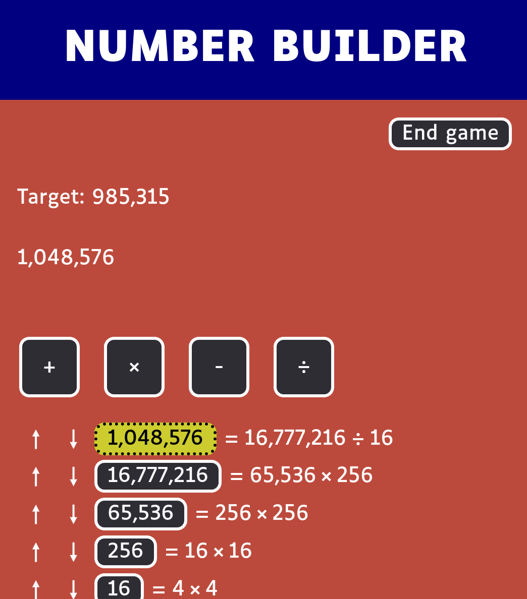 How quickly can you get to the target number by building up from 1, using only arithmetic operations?