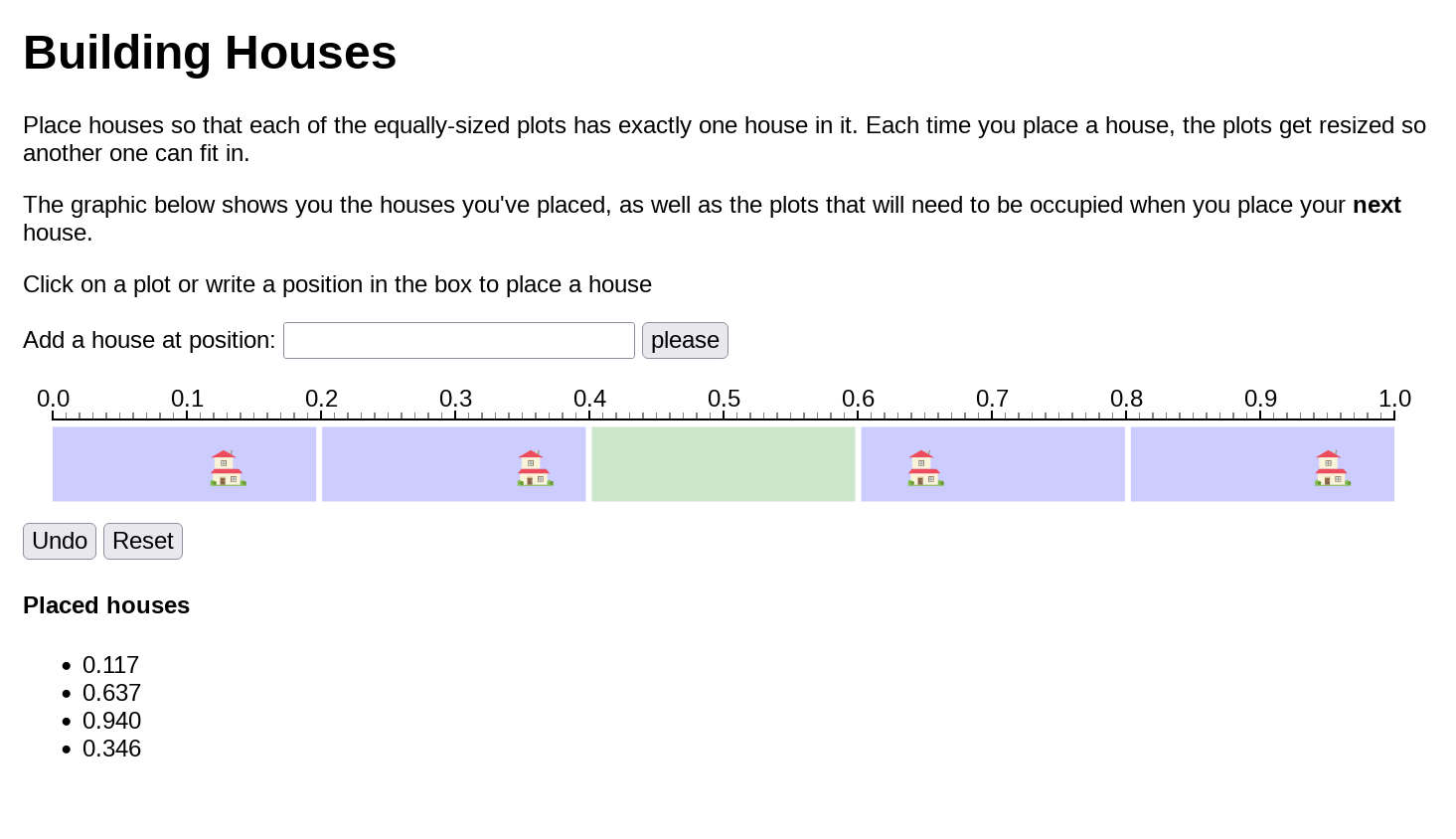 The aim is to place flags on a field of length 1, so that when you divide the field into equal-sized plots, there's exactly one flag in each field. To complicate matters, you place the flags one-by-one, and you check whether the placements are valid after each flag goes down.