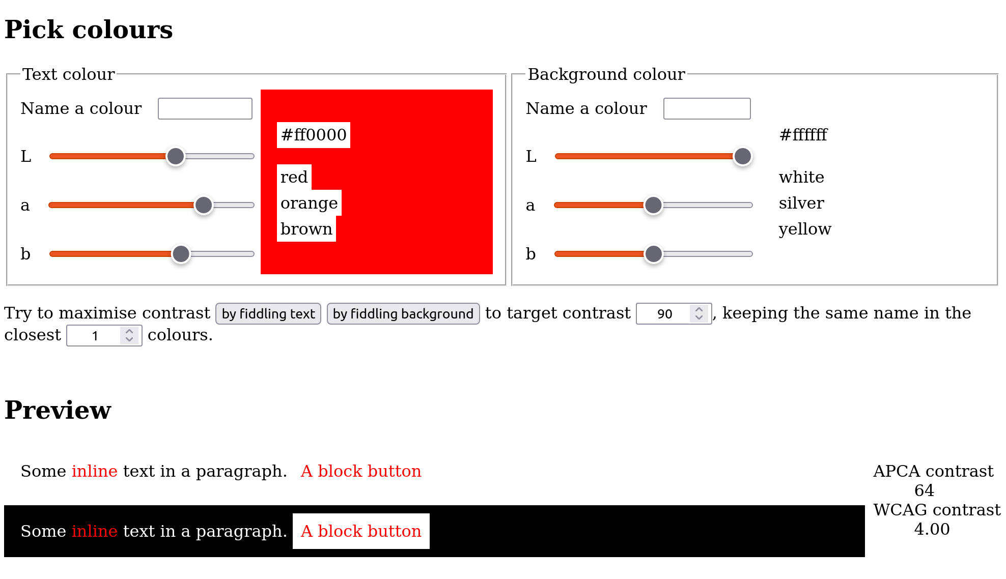 A tool to help me, with limited colour vision, make accessible colour palettes.