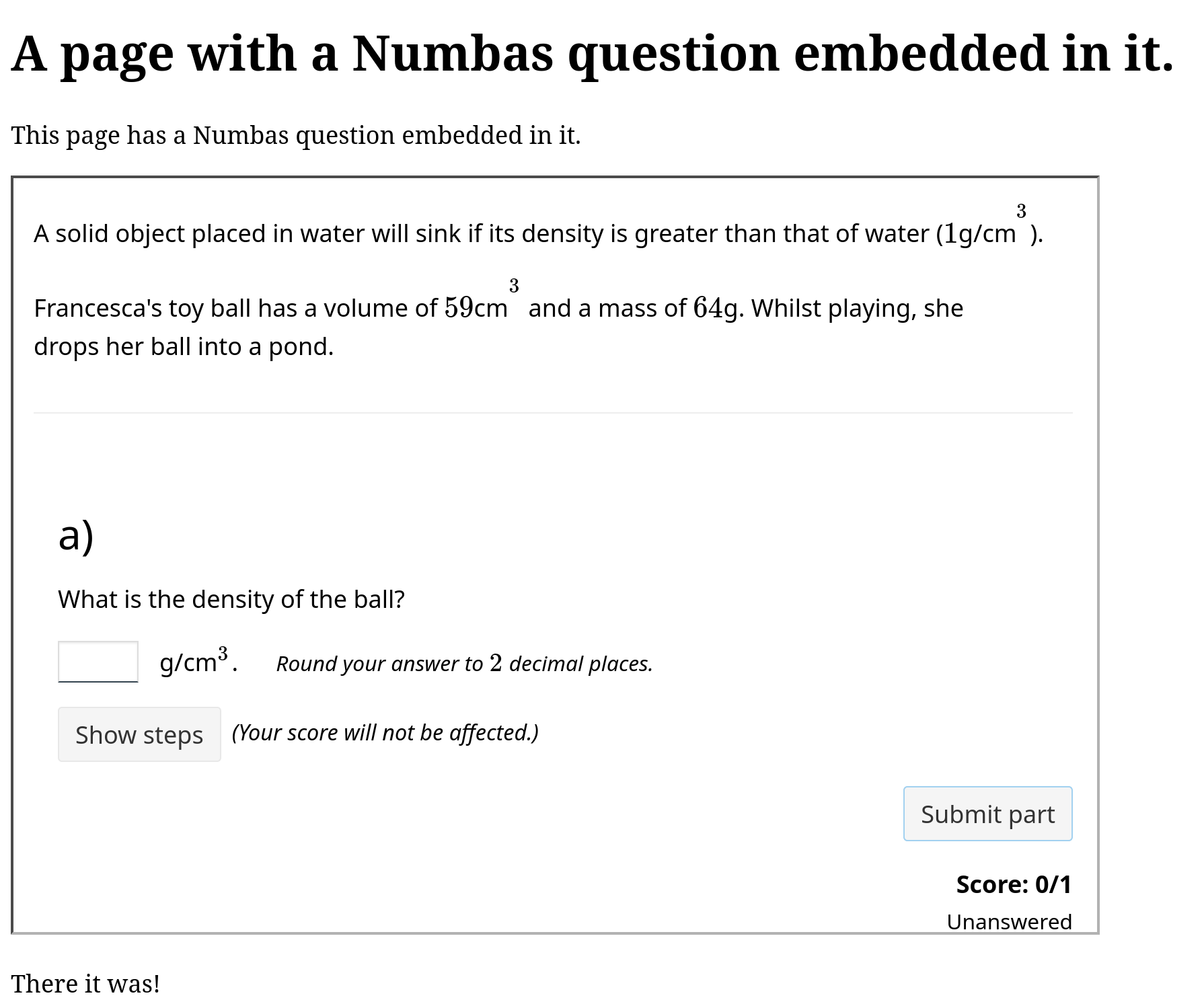 Shows how to embed a Numbas question in a page using an iframe tag