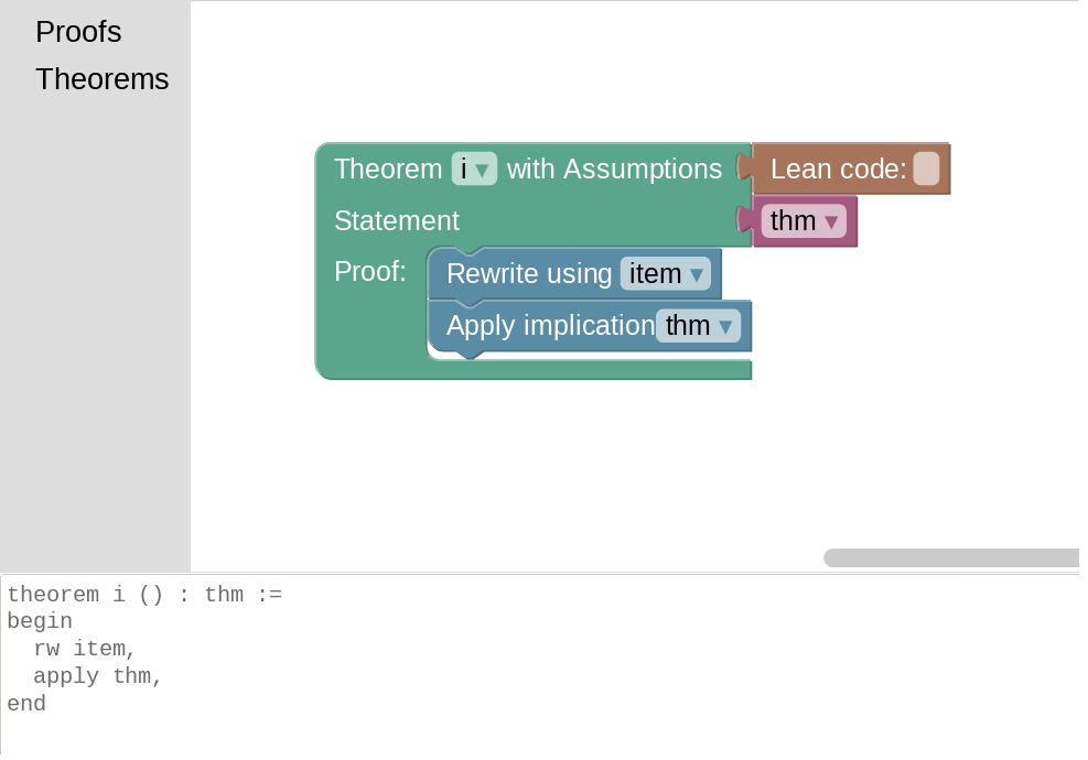 I had a thought about using Blockly to construct proofs, which would be translated to Lean code for evaluation.
