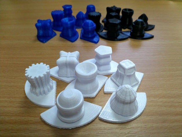 At work we’ve got a 3D printer. In this series of posts I’ll share some of the designs I’ve made. There are seven kinds of shape. There are three copies of each shape. The pieces …