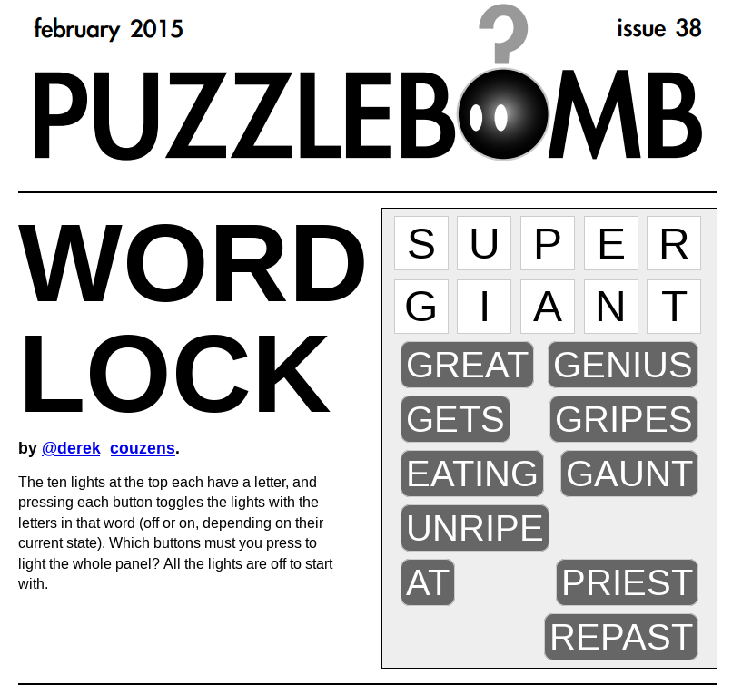 The Word Lock puzzle from February 2015's puzzlebomb